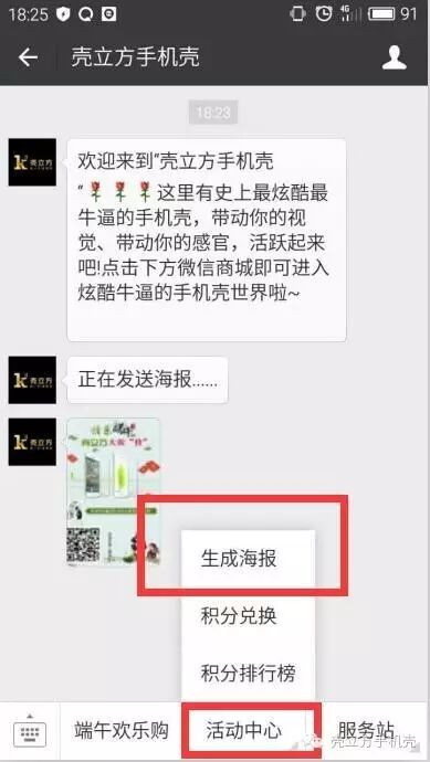 微信扫码关注【壳立方手机壳】,点击菜单栏【活动中心】中的“生成海报”