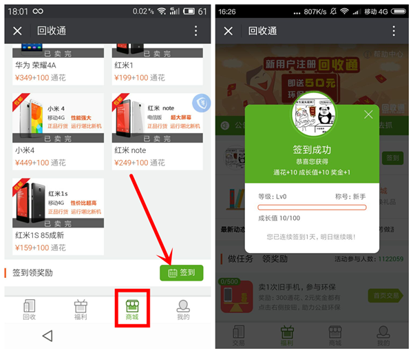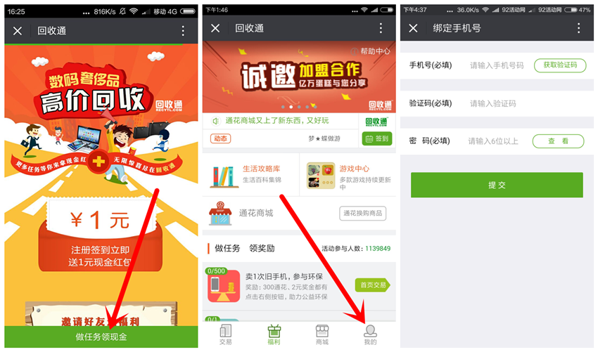 回收通,老活动了,现在还可以参与,首次签到100%送1元微信红包,秒到账