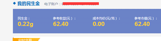 5、转入100后,返回,选择【民生金】进入购买签约即可(不用花钱),第二天会收到两个0.1g民生金和0.02g民生金(前面两个活动得到0.2g民生金,还有一个如意宝加奖的0.02g民生金,合计0.22g民生金)