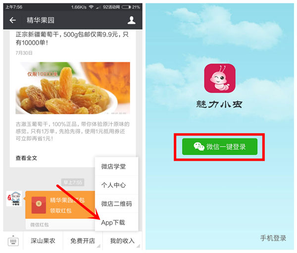 1、微信扫码关注【精华果园】,点击【我的收入 - app下载】下载后打开app,使用“微信登录”