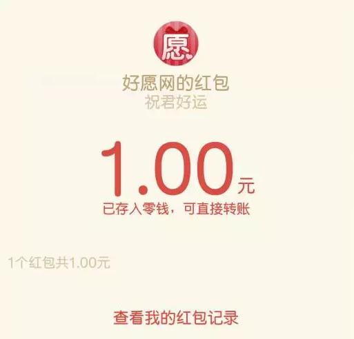 好愿网携微信理财通 举办的活动,100%送1-888元微信红包,秒到账