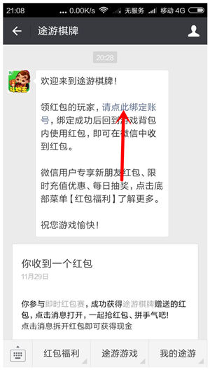 4、微信关注【途游棋牌】,按提示绑定账号,才能收到微信红包