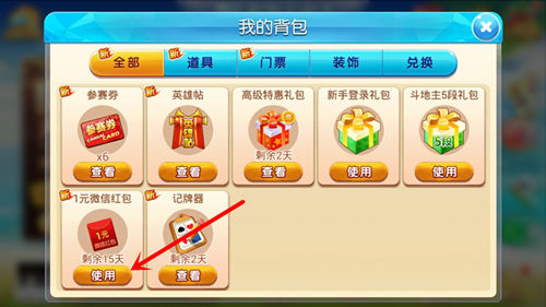 5、在app里,【我的背包】使用刚刚领取的微信红包,秒到账