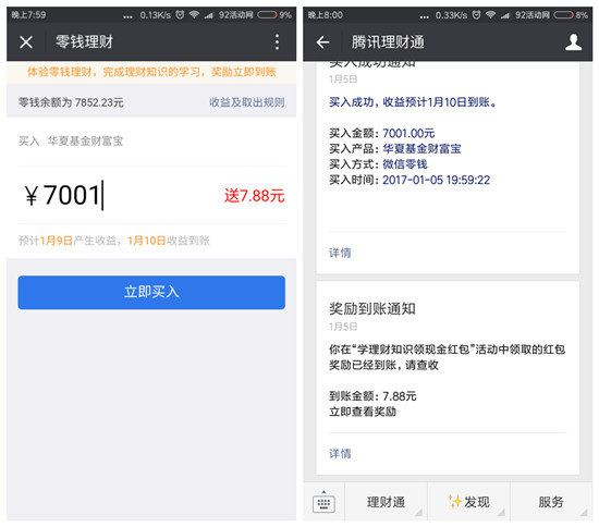 微信零钱理财领5.88红包,活期秒提现 2017年1月30日结束