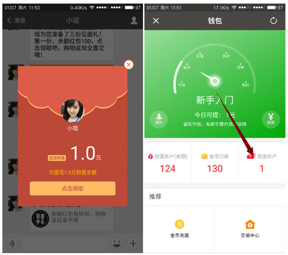 还有就是小号登录APP,大号就有钱!
