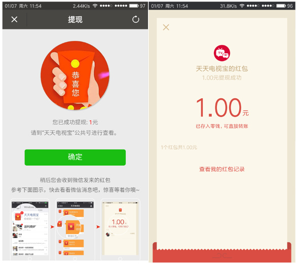 天天电视宝,下载app,100%领1元微信红包,秒到账