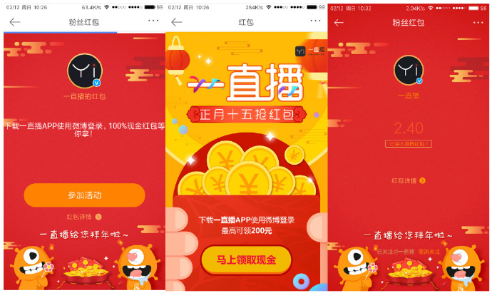 一直播100%领取1元以上微博红包(可提现支付宝)