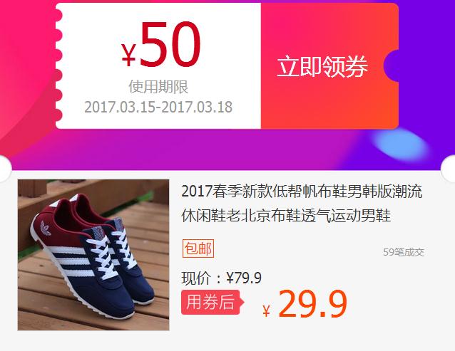潮版粗麻帆布鞋,优惠券后37元