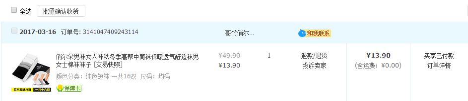 13元撸16双袜子 折合一双不到1元