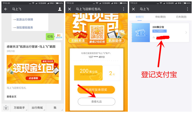 马上飞,100%领200集分宝(2元)或者5元话费,非秒到!