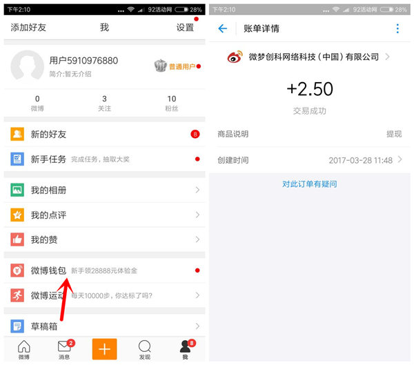 到【我】-【微博钱包】里提现支付宝即可,提现是秒到的