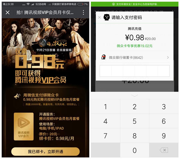 【微众银行】0.98元开一个月腾讯视频VIP,最新活动!