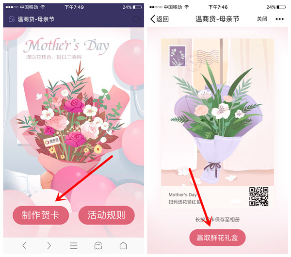 2:进入【制作贺卡】,然后点【赢取鲜花礼盒】