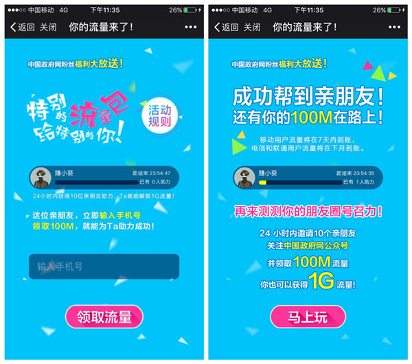 国务院最新活动,免费领100M,邀请10个好友助力再得1G!