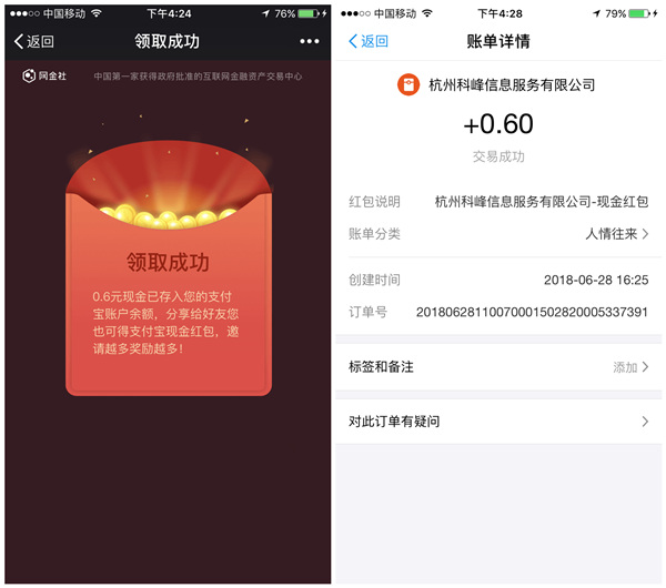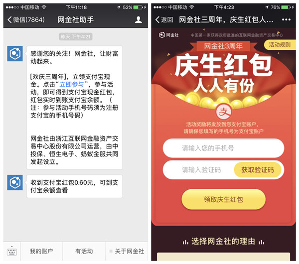 网金社微信100%领0.6元支付宝现金(秒到余额) 2018年7月15日结束