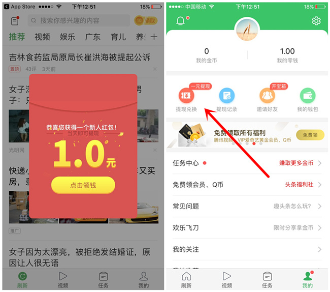 趣头条app 下载100%送1元微信红包+5话费或Q币