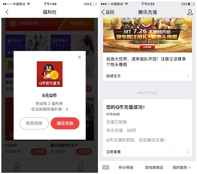 - 08-03使命召唤老用户登录游戏领2Q币和2元微信红包