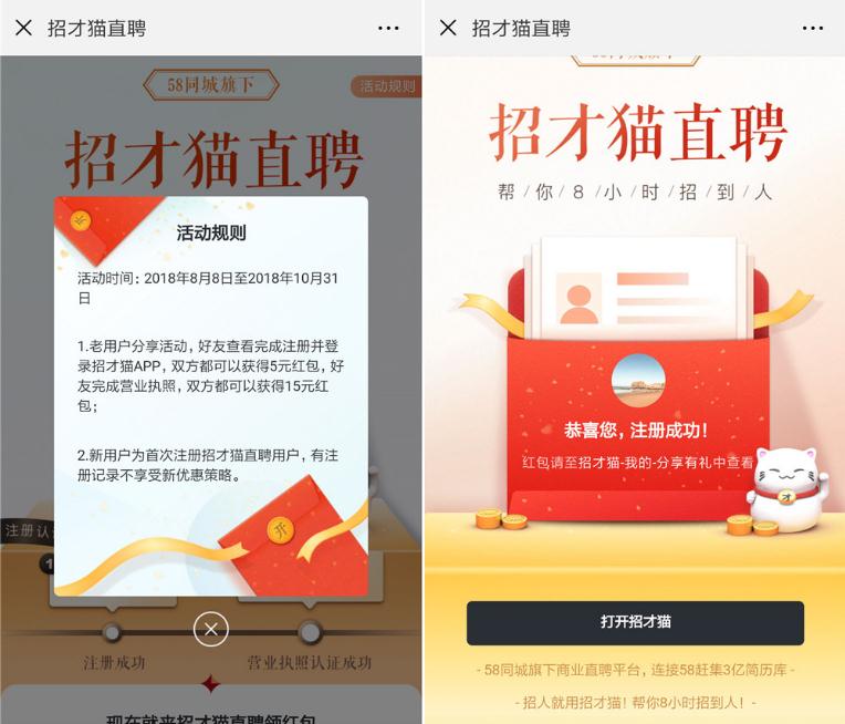 招才猫新用户100%领5元微信红包 2018年10月30日结束