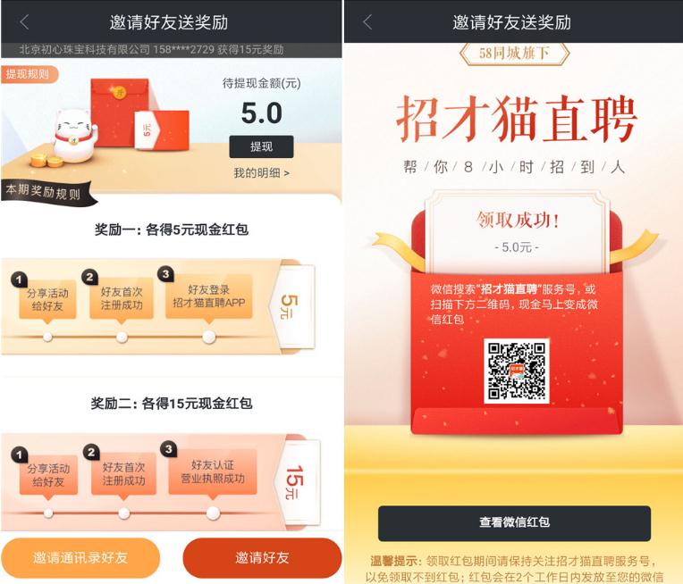 招才猫新用户100%领5元微信红包,非秒到,感兴趣就看看!