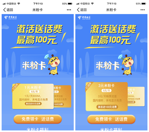 【米粉卡】激活送50~100话费,免费用10个月~20个月