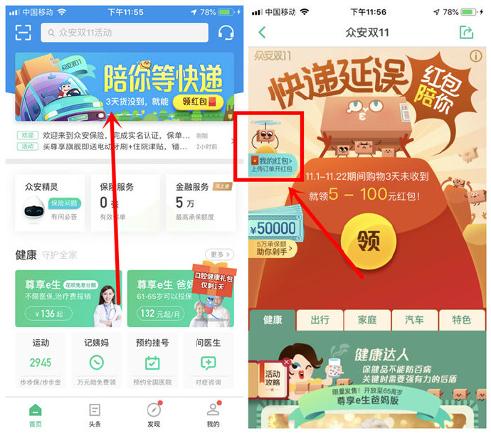 淘宝买东西3天没到来领5元红包!5天没到最多100元 众安保险的活动 2018年11月22日结束