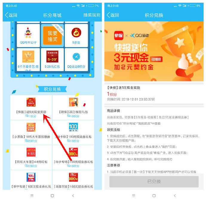 1:手机QQ,进入【QQ运动】 - 【积分商城】
