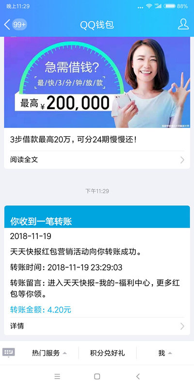然后下载天天快报app,去兑换得3元现金!输入邀请码EQQTA5 再得1元,一共4元,提现秒到账!