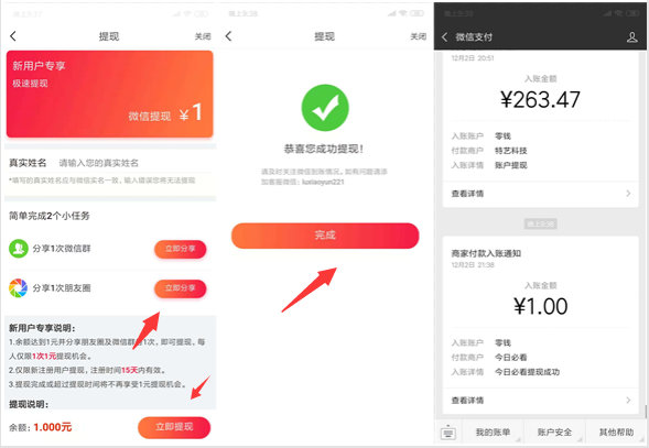 今日必看 新人100%领1元微信红包(秒到)