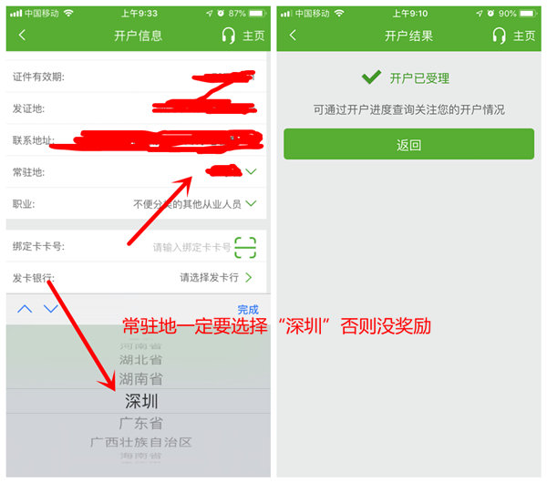 5、填写资料绑卡开户g常驻地必须写深圳否则无奖励)