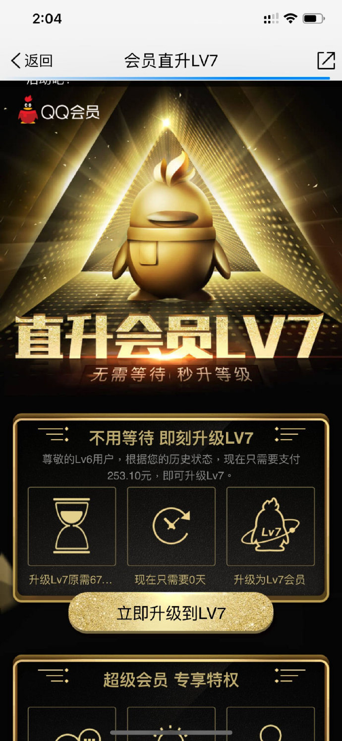 QQ会员秒升7级,部分用户才可!大家看看自己支持不吧