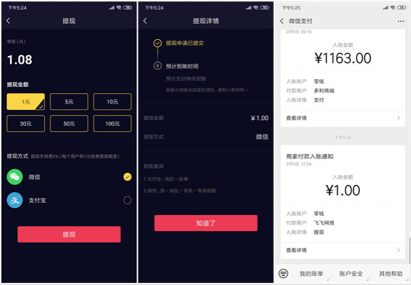 3:新人注册后第一次都是1元以上,之后就都是几分的了,平台满1元就可以提现了;
