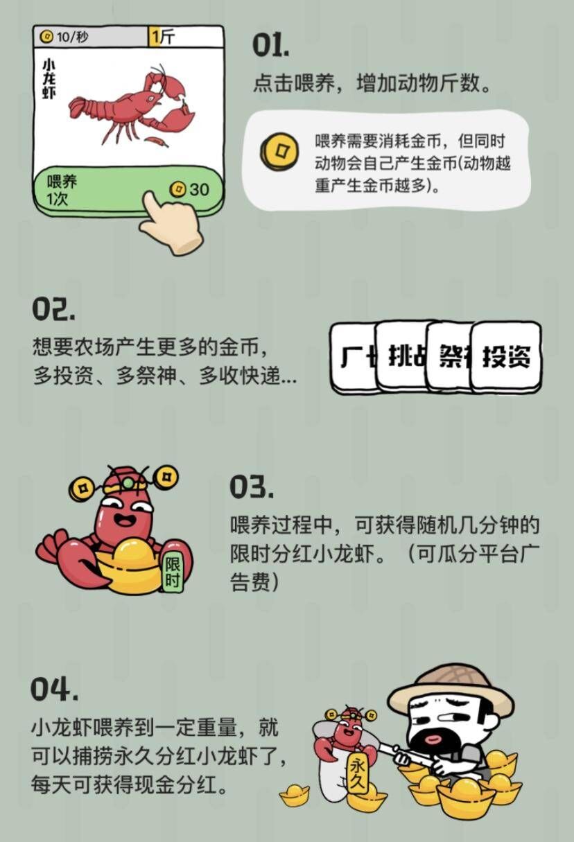 这个据说是小龙虾养到1500斤每天可以分红160元,估计挺难的,平时没事的可以去玩玩看