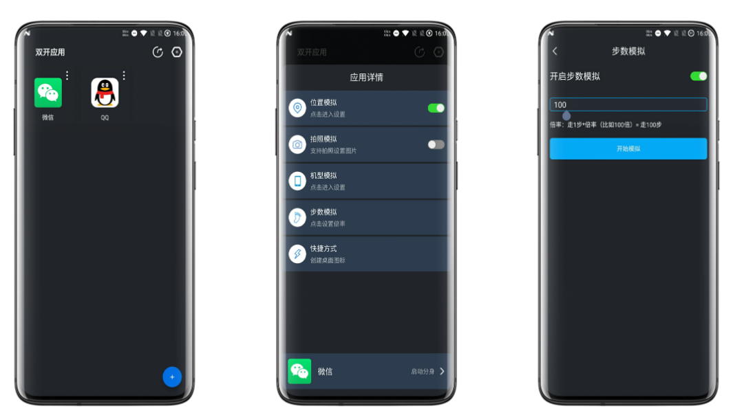 双开应用可以在手机中进行app多开操作,比如同时开启两个微信或者QQ这样的软件,同时登陆两个或多个账号也没有问题,还有微信模拟步数,虚假定位,机型伪装等功能,双开应用让你一键切换工作与生活,还有一些彩蛋等你来发现。