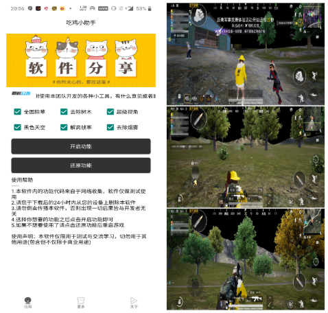 吃鸡小助手 全图除草、去除树木、超级视角、黑色天空、接高频率、去除烟雾
