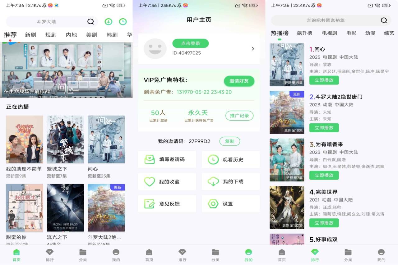 一款海量国内外影视内容,电影、电视剧、动漫、综艺、纪录片、日剧韩剧美剧统统都可以免费看,各种分类、排行、推荐帮助你找到好看的剧,不再剧荒,能随时缓存下载,随时随地都能轻松看剧。(解锁去广告功能)