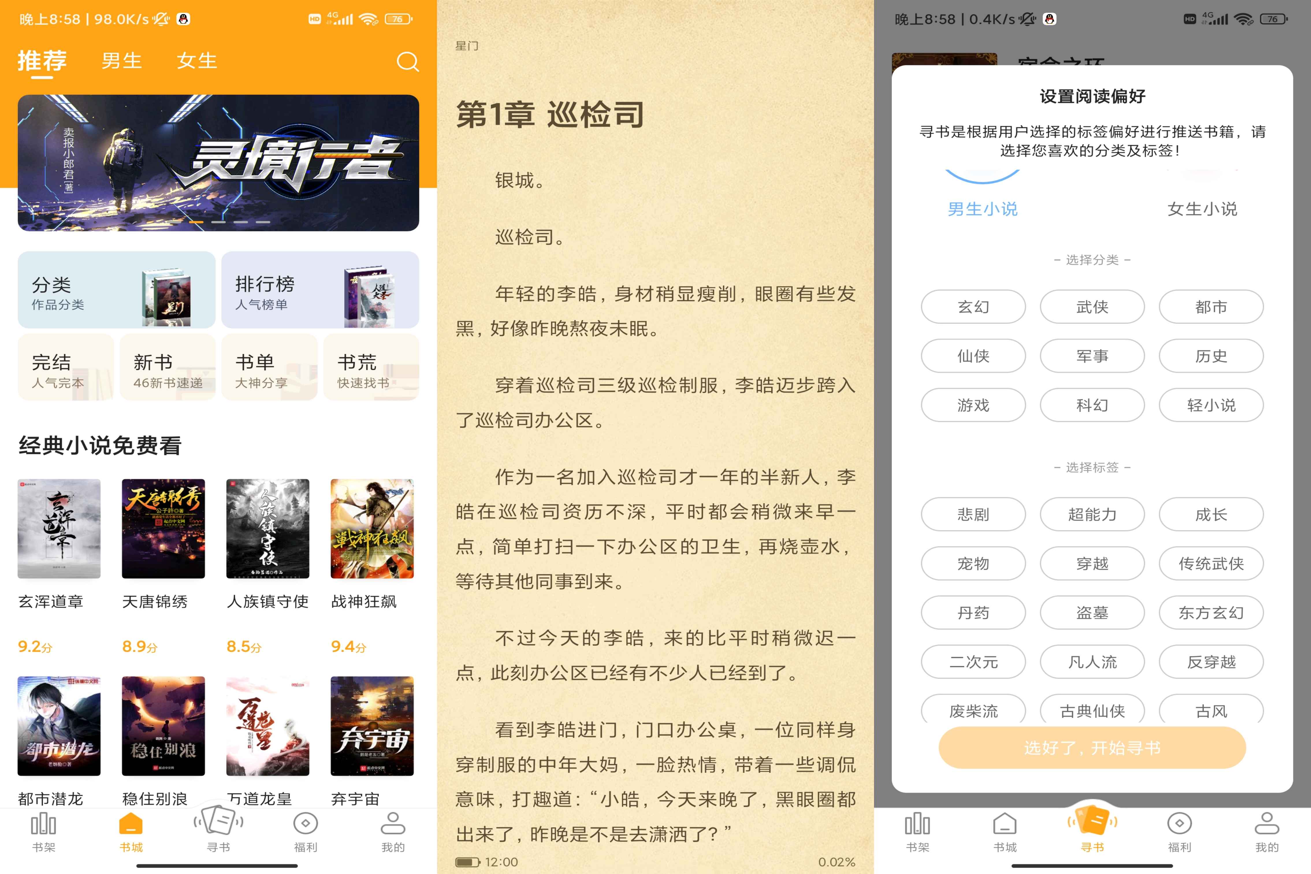 一款资源齐全的小说阅读宝藏,不管是男生还是女生,只要你喜欢看小说,来下载这款软件就对了,不管是作品分类,还是人气榜单,还有人气完本、新书速递、大神分享、快速找书、经典小说免费看、猜你喜欢等等板块内容。