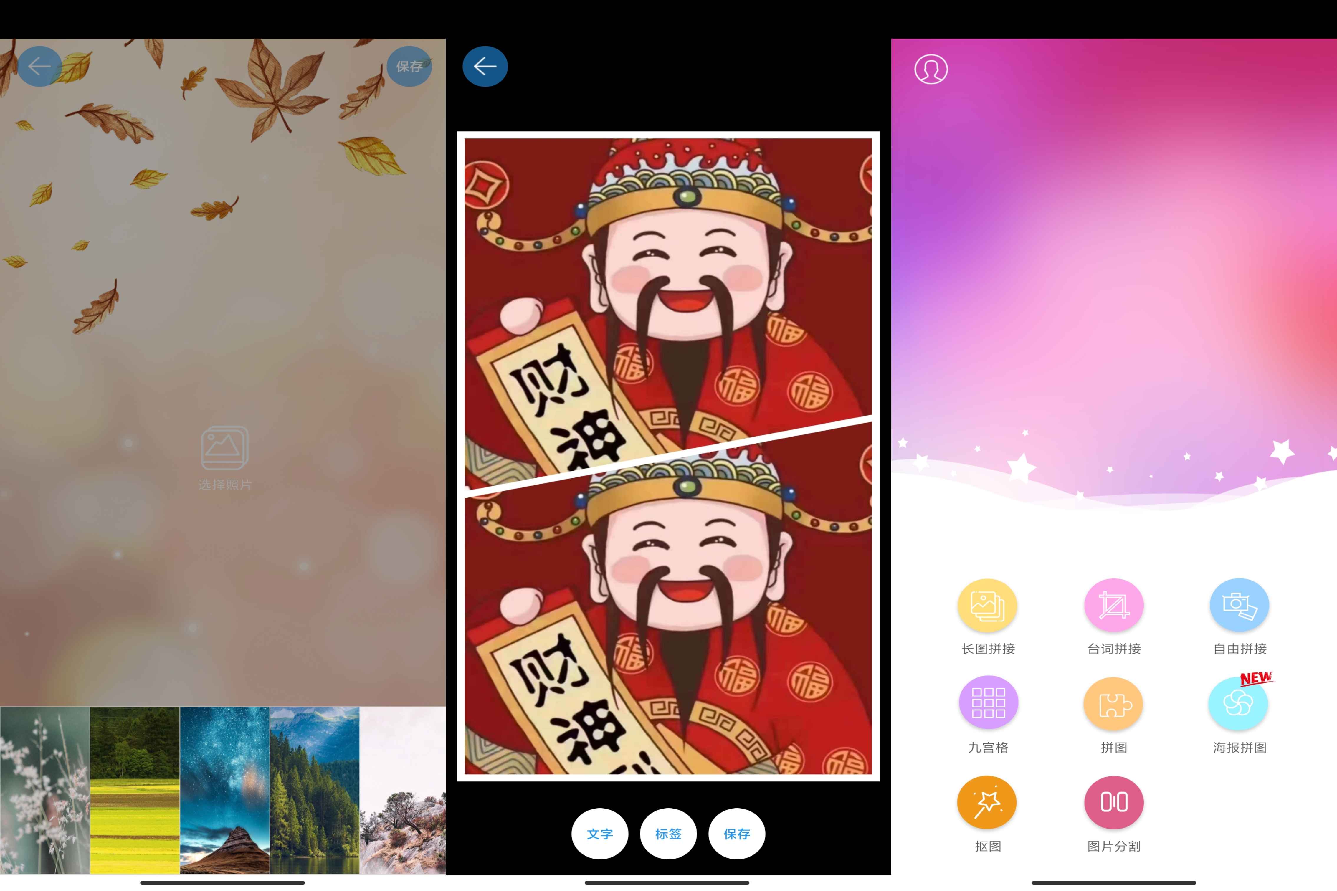 一款拼图软件,其拼图功能十分强大,拼接图片,只需一键即可完成九宫格美图拼接,用户能够自行调节尺寸,同时,支持任意数量的图片相互拼接,还有许多精美滤镜可以添加,为相片增色。(解锁VIP功能)