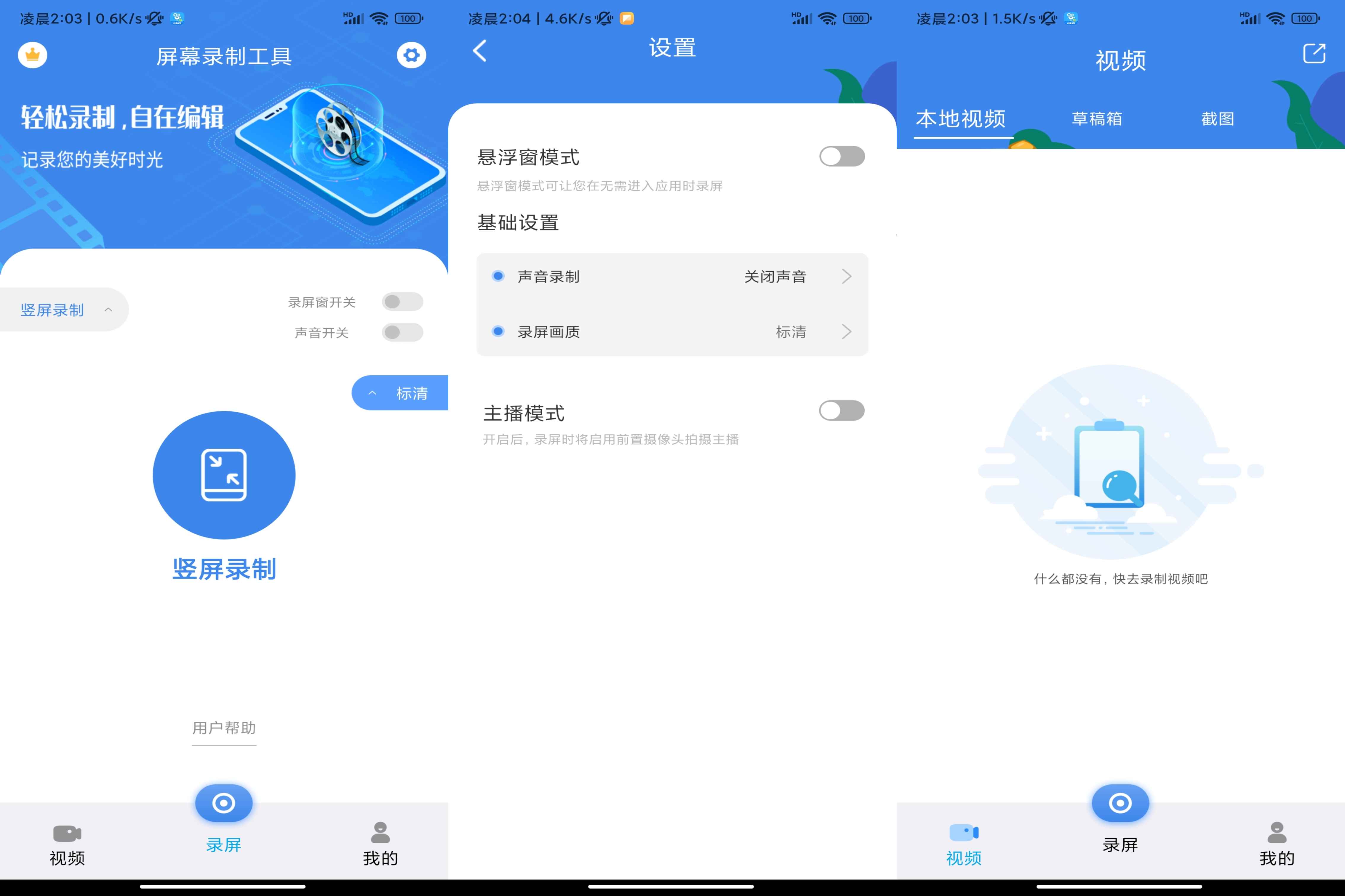 一款免费稳定实用的录屏软件,它能清晰流畅录制手机屏幕一切活动,具有多种录屏模式满足您不同录制需求,输出高清视频画质,是你得力的录屏神器。(解锁VIP功能)