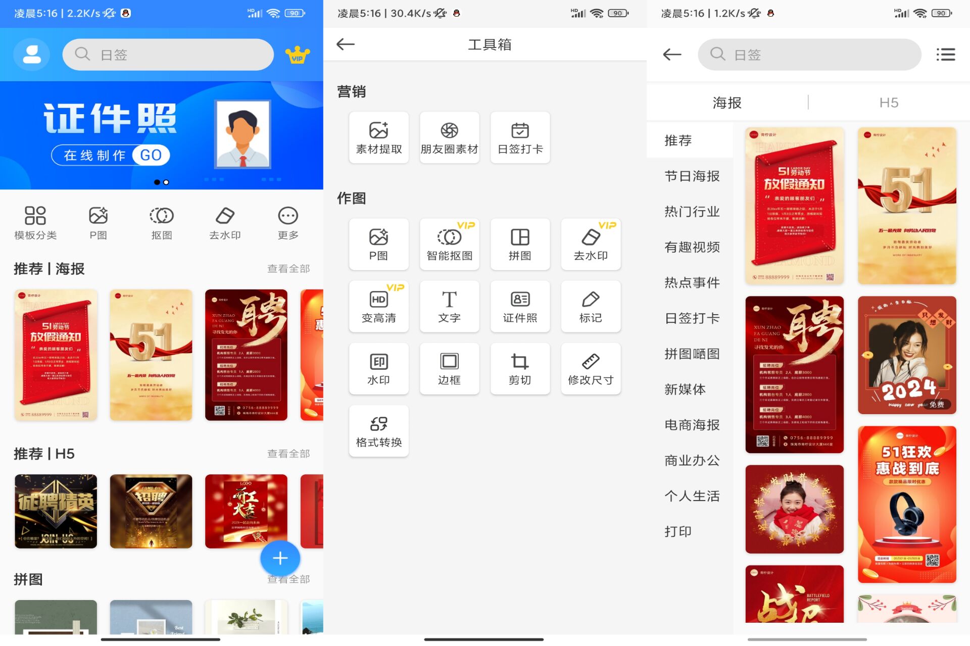 一款安卓制作海报和各种宣传素材的神器,这款软件包含的功能非常多,无论是做手机上的海报,logo,壁纸,还是微信上的头像和封面等等都可以制作,直接手机上进行编辑,小白也可以轻松上手∽(手机号登陆解锁VIP功能)
