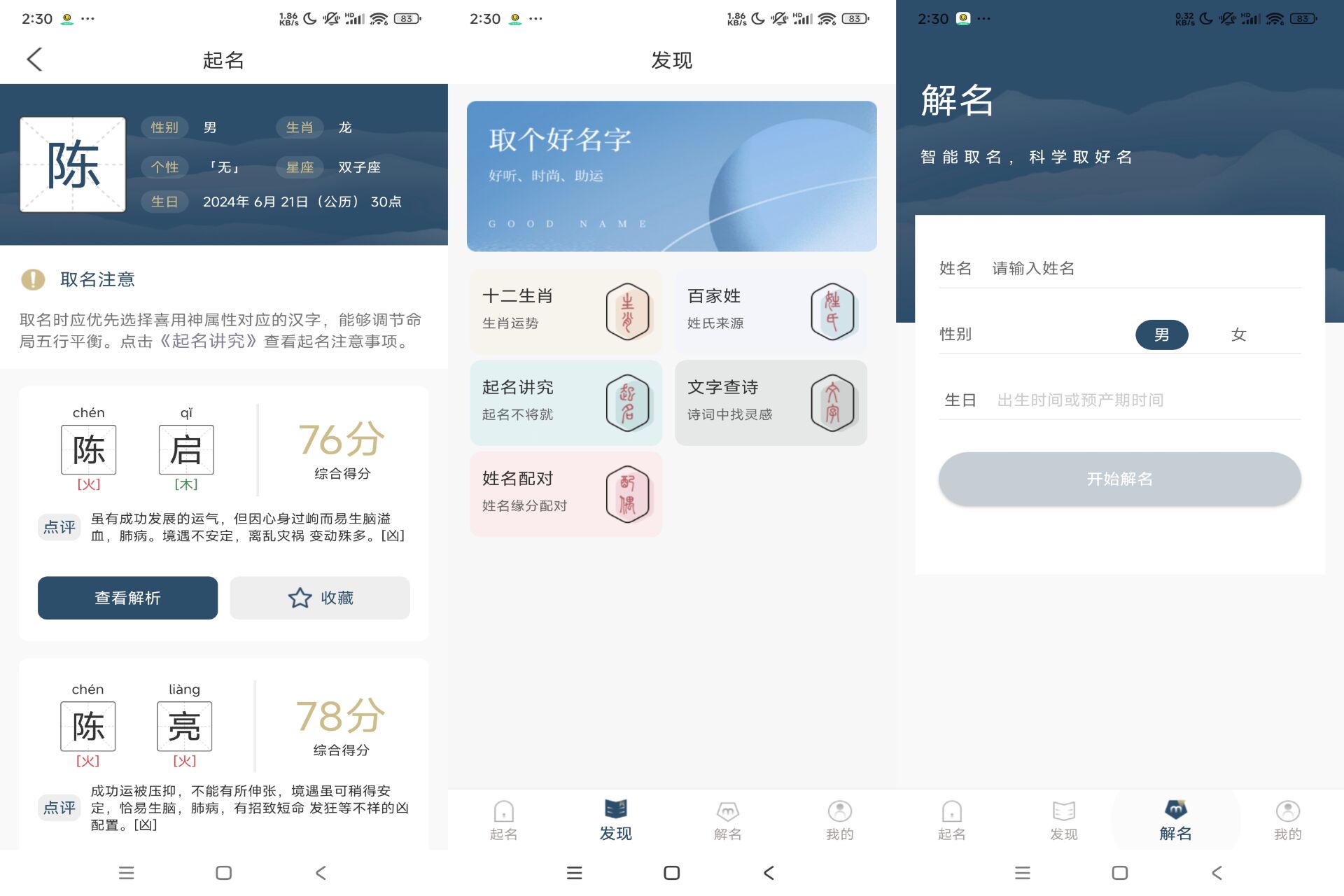 一款专业的按生辰八字为宝宝起名的工具。该软件具有多种功能,包括生成2-4字名字、查询生辰八字信息、名字评分和周易好名字超吉筛选等。(解锁去广告)
