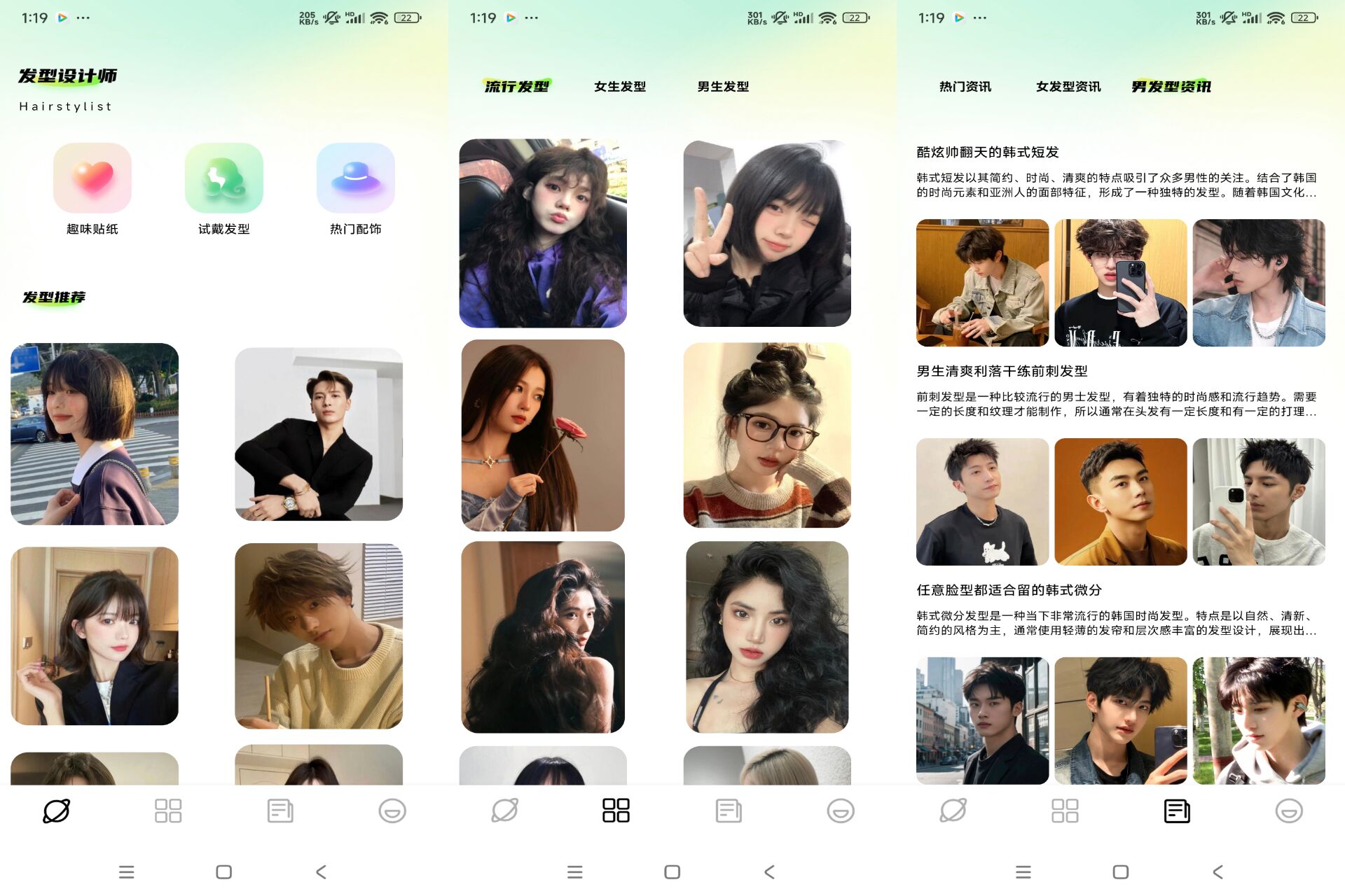 一款发型推荐的应用,里面有海量的发型图片让你预览,如果没有找到自己合适的发型,就来发型搭配助手总有一款适合自己的发型,发型资讯让你了解。(解锁去广告)