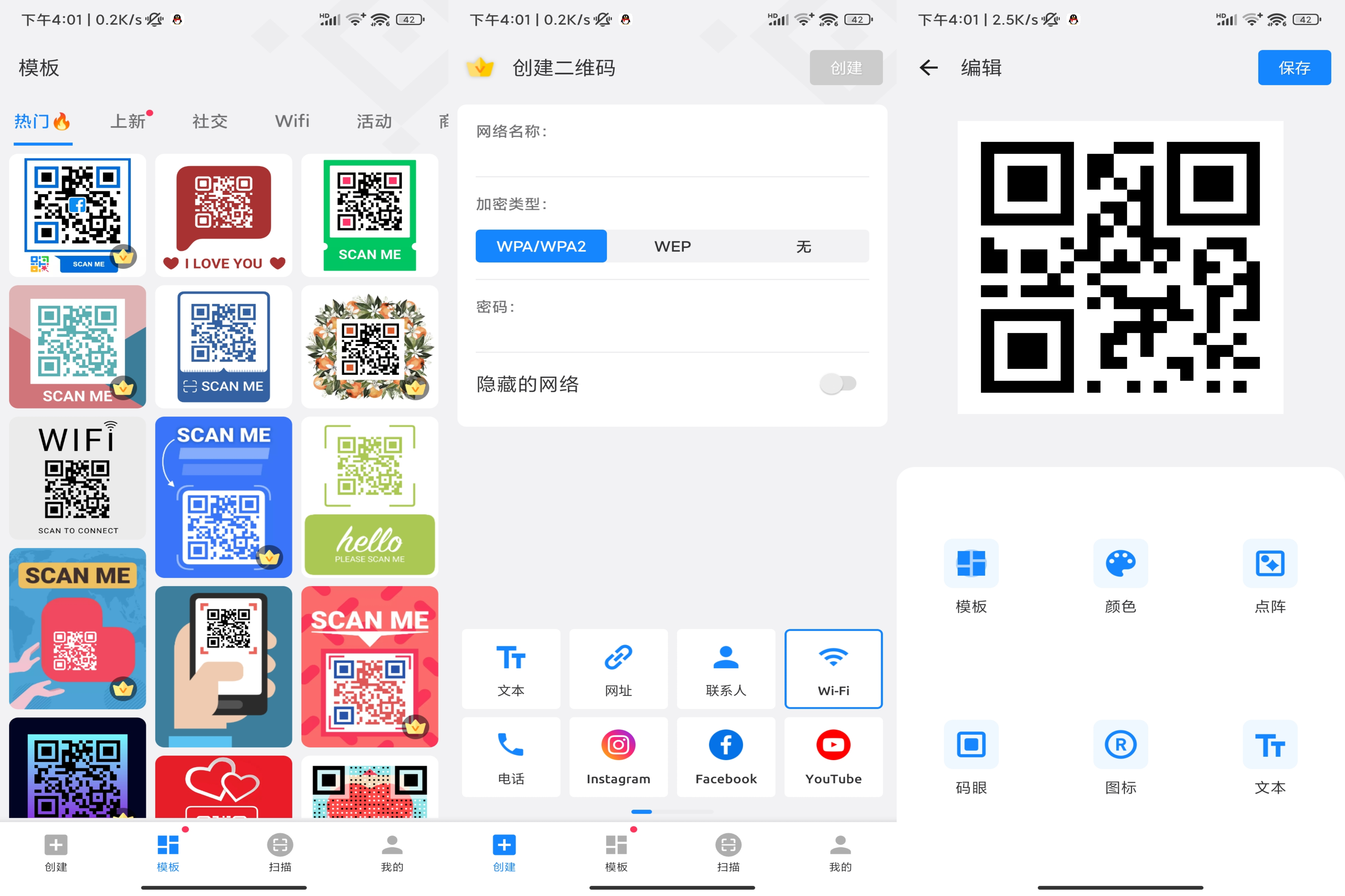 一款能够生成制作二维码的工具,一键制作专属彩色二维码,支持文本、网址、图片、视频、语音、音乐、名片、WIFI等格式,多种精美主题和边框任君选择,也可以匿名的表白。(解锁VIP功能)