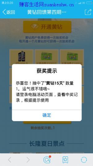 黄钻用户免费抽一次机会,目前有大水,几乎人人都中了15天黄钻