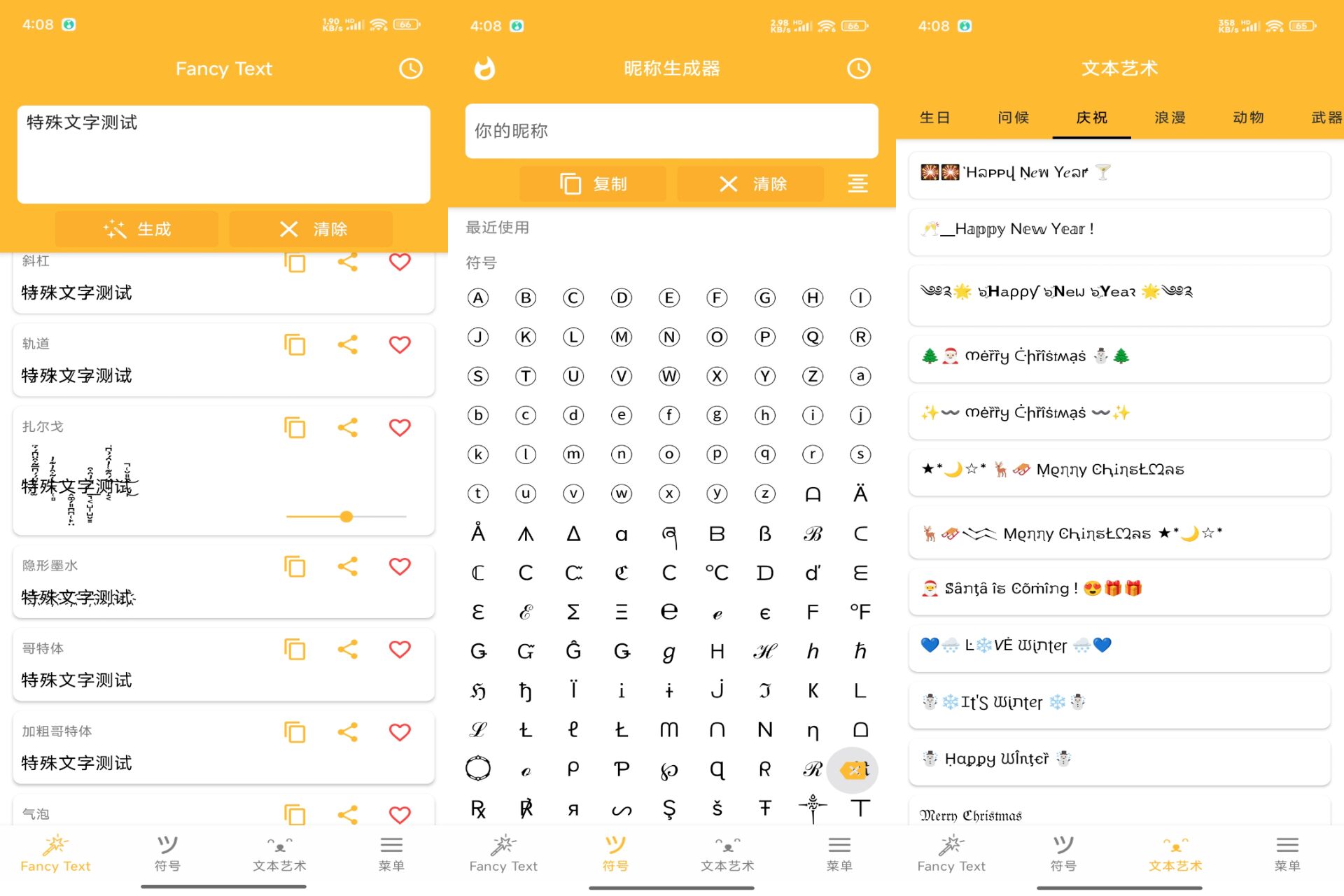 一款文字处理App,创意文字,个性表达!提供各种特殊文字符号、艺术字、花式字体生成功能,让你在社交媒体、聊天中展现个性,表达独特想法。操作简单,效果多样,是你的文字创意好帮手!(解锁VIP功能)