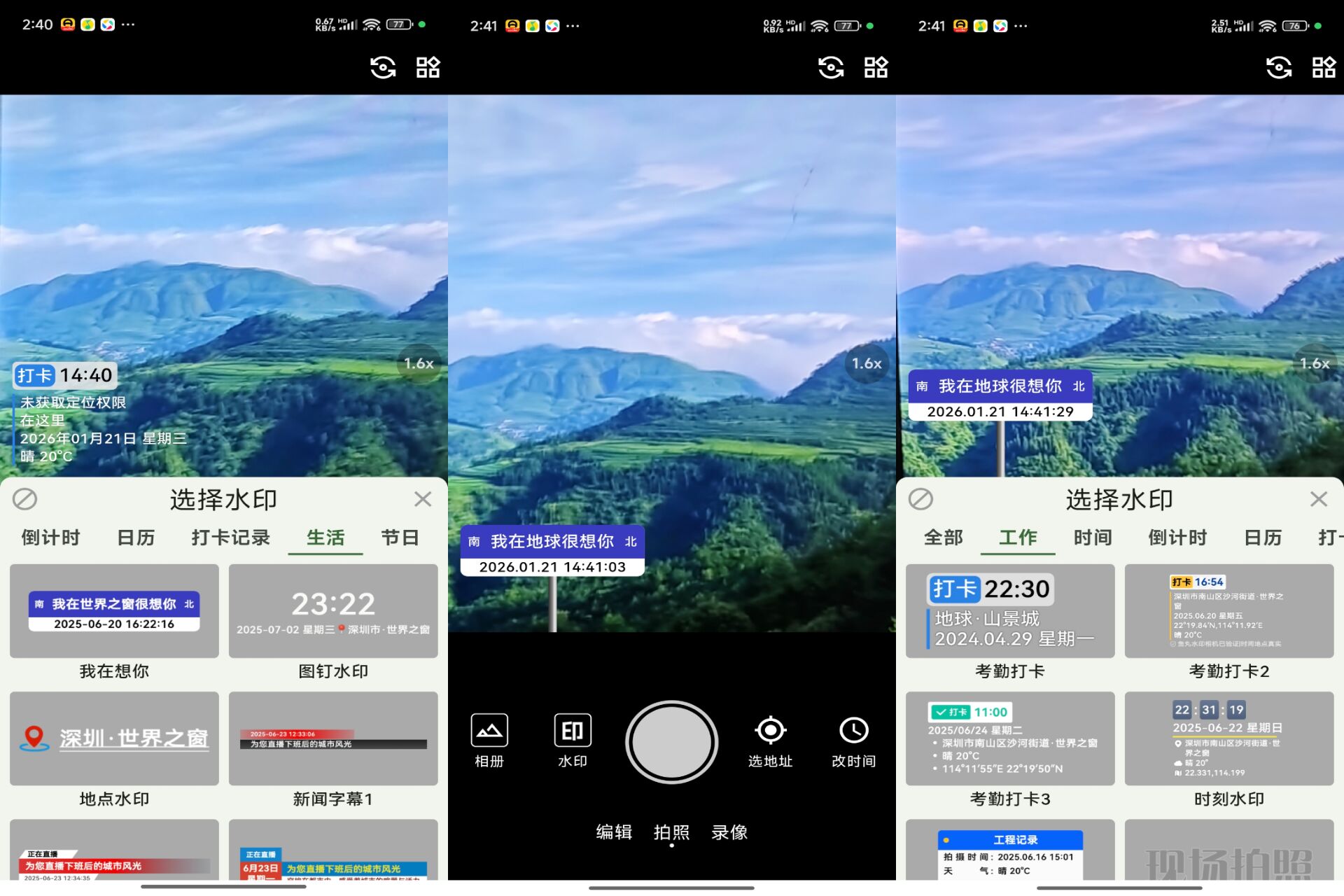 一款手机拍照加水印App,鱼丸水印相机,一键添加水印,记录美好!提供拍照功能,并支持添加多种个性化水印,包括时间、地点、文字、天气等,让你轻松记录生活,分享精彩瞬间。界面简洁,操作便捷,是你的拍照好帮手!