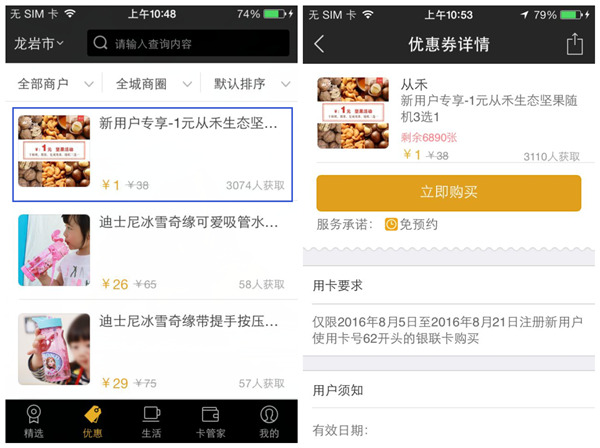 仅限8月5日~8月21日之内注册的用户才享有1元购机会,且银行卡号码62开头的用户