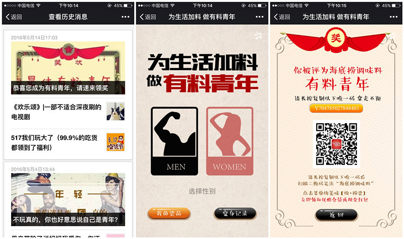 1、微信关注【海底捞调味料】查看历史消息5月14号那条【恭喜您成为有料青年】阅读原文进入,可获得一个兑换码子